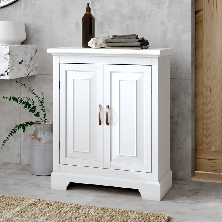 إنها تقدم أسلوباً عصرياً وحلاً عملياً للتخزين في قطعة واحدة. مصنوعة من الخشب الطبيعي المتين بلمسة نهائية بيضاء، وتحتوي على ثلاثة رفوف داخلية لتخزين مستلزمات الحمام أو المناشف أو الديكور. سهلة التجميع ومصممة للاستخدام طويل الأمد، وتمتزج بسلاسة مع الديكورات العصرية والكلاسيكية على حد سواء.
