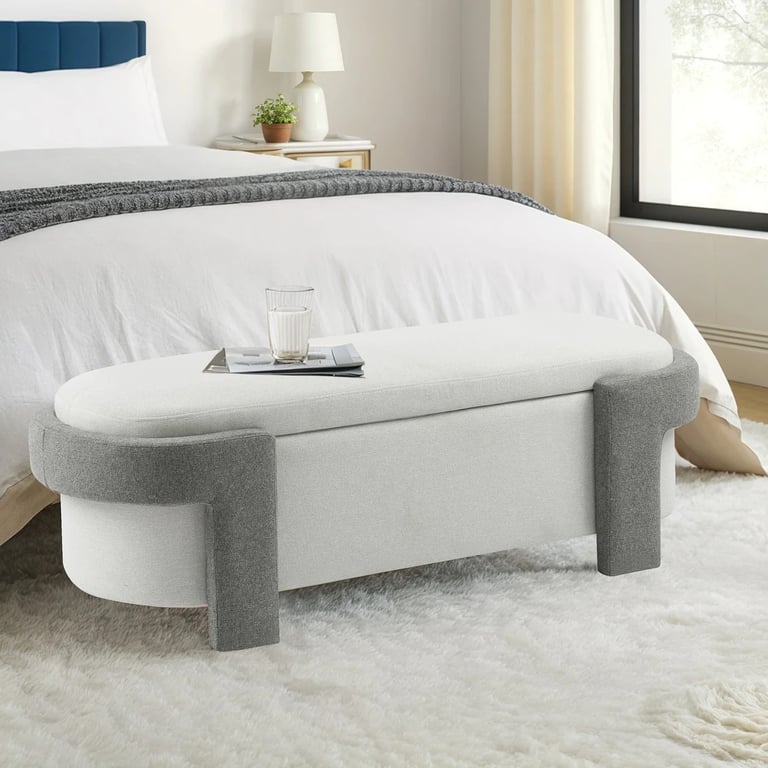 يجمع بين الجمال والوظيفة في قطعة واحدة متكاملة. يتميز بتصميمه المنحني وانحناءاته الناعمة التي تضيف طابعاً عصرياً، بالإضافة إلى المقعد المبطن المريح. القاعدة المصنوعة من الخشب الطبيعي تضفي لمسة دافئة وأنيقة. يوفّر حيز التخزين الداخلي مساحة مثالية لترتيب الأغراض وإخفاء الفوضى. مثالي لغرف النوم، المداخل، أو أسفل النوافذ، ويمنح المكان لمسة من الرقي العملي.