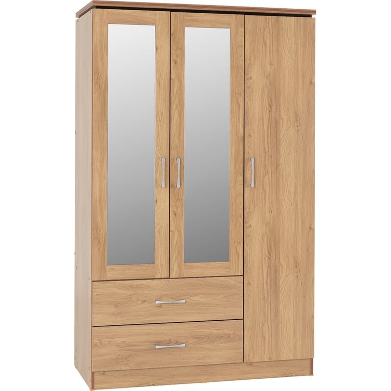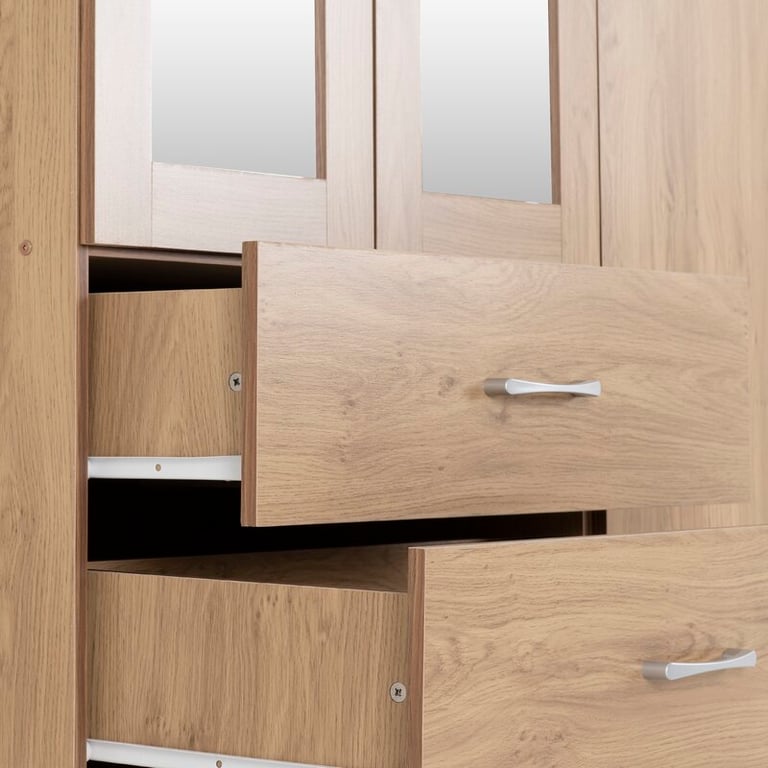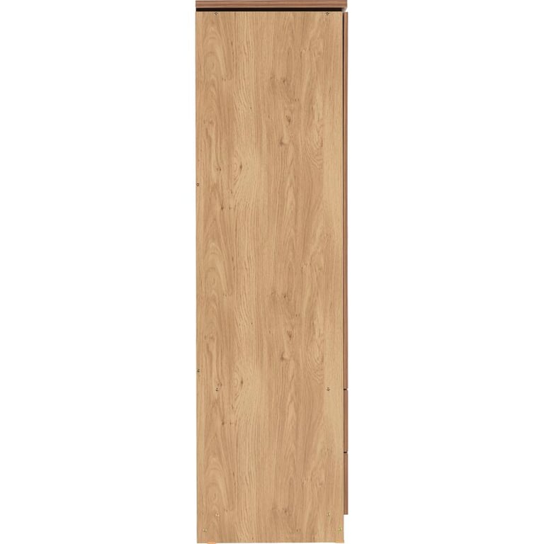 تضيف خزانة الملابس طرازًا عصريًا. يتميز التصميم بتشطيبات خشبية دافئة. تحتوي الخزانة على درجين و4 أرفف وعلاقة توفر لك الزيد من المساحة. المرآة تعكس الضوء مما يعطيك مساحة أكبر في غرفتك. كما أنه مصمم بمقبض داخل بسيط مطلي بالنيكل. هذه الخزانة الطويلة والأنيقة تعطي مساحة رائعًة لأي غرفة منزلك مما يعطي بريقاً رائعاً
