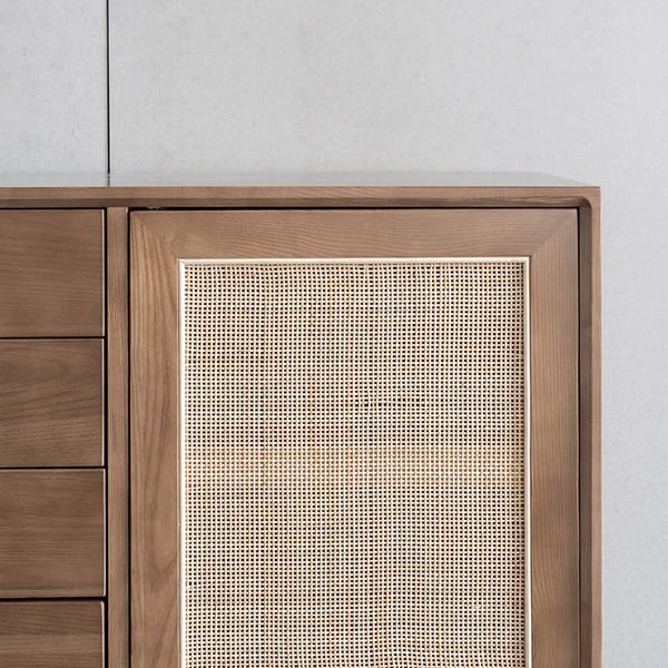 بوفيه أنيق مصنوع من الخشب الطبيعي بتفاصيل منسوجة تضيف دفئاً ولمسة فنية راقية.