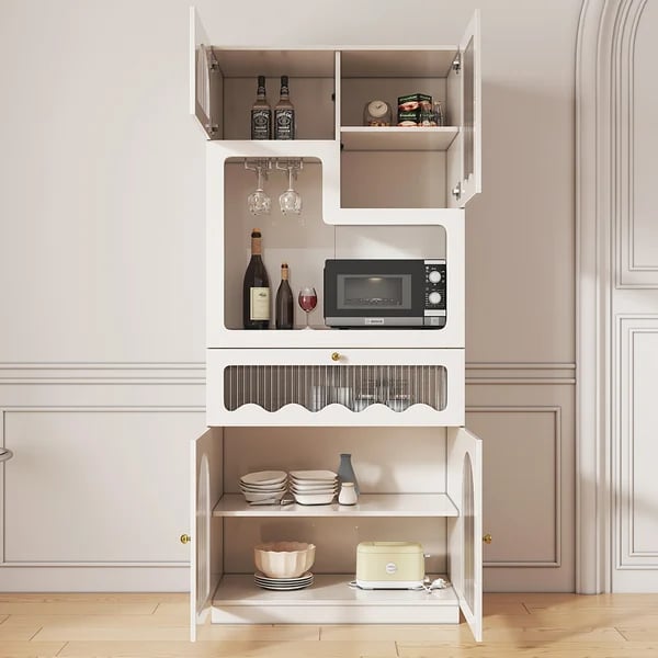 أضف إلى منزلك بوفيه صغير أنيق للغاية. تعد خزانة المؤن الحديثة القائمة بذاتها مزيجًا مثاليًا من الأسلوب والوظيفة. الخطوط النظيفة واللون الأبيض الطبيعي يجعلها خيارًا مثاليًا للبوفيه لأي مطبخ.