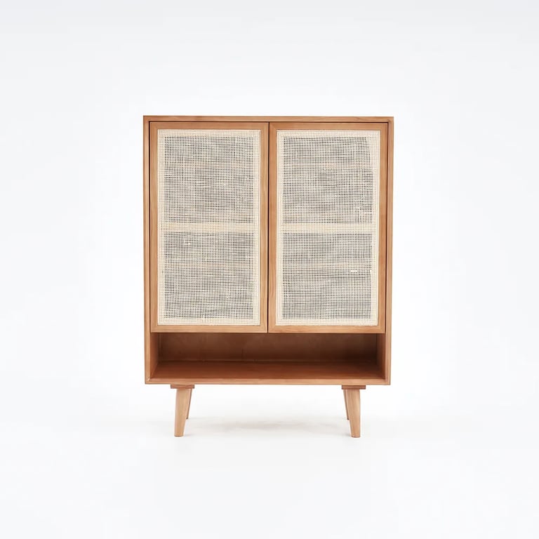 أضف لمنزلك تويفلي جزامة مودرن من الخشب الطبيعي والراتان واستفيد من التصميم المميز الذي يجمع بين الاستخدام العملي من حيث توفير ٤ رفوف للتخزين والشكل العصري الذي يعزز ديكور المنزل الحديث.