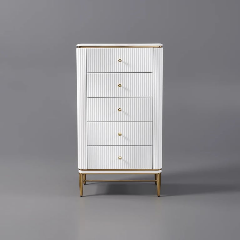 يجمع بين دفء الخشب الطبيعي وجرأة التفاصيل الذهبية ليصنع بيانًا فاخرًا ومبدعًا. يتميز بأدراج تنزلق بسلاسة وخشب معالج مقاوم للماء والتشققات والحشرات، مما يجعله عمليًا بقدر ما هو لافت للنظر — مثالي للمساحات العصرية ذات الطابع الفني.