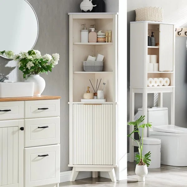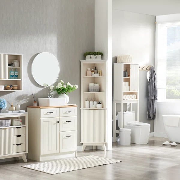 ابتكر مساحة جميلة ومنظمة باستخدام خزانة الحمام هذه، التي تجمع بين الجودة العالية والأناقة.