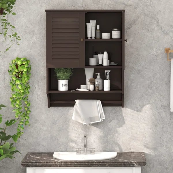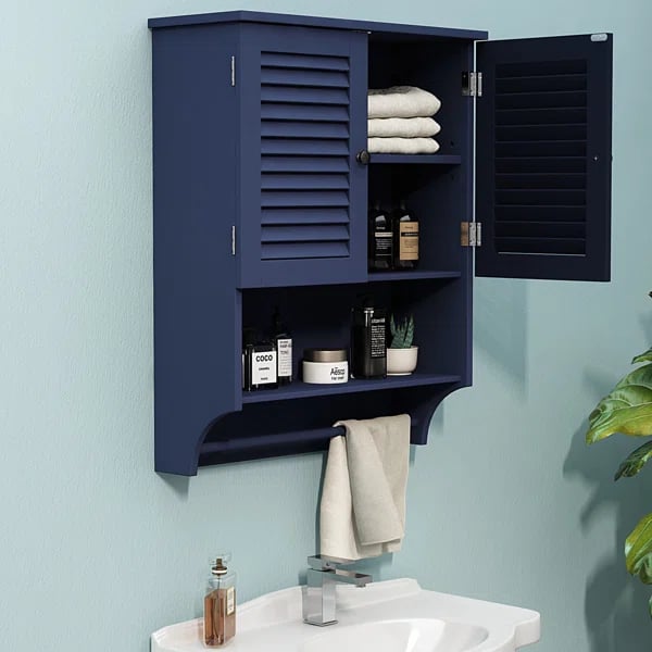 اجعل حمامك مميز بحصولك على خزانة حمام عملية جداً تلبي جميع احتياجاتك كما أنها مميزه في تصميمها،تتميز بأبواب ذات شرائح لتدوير الهواء ومقاومة للماء والرطوبة،استغل مساحة من حوائط الحمام وضع فيها هذة الخزانة العملية التي توفر لك مكان و مساحة تخزينية رائعة لوضع جميع مستلزماتك ،فهي تجعل حمامك خالى من الفوضى ومرتب ومنظم وليس هذا فقط بل تبرز أناقة حمامك نظراً لتصميمها الكلاسيكي الذي يجعلها قطعة مميزه في حمامك