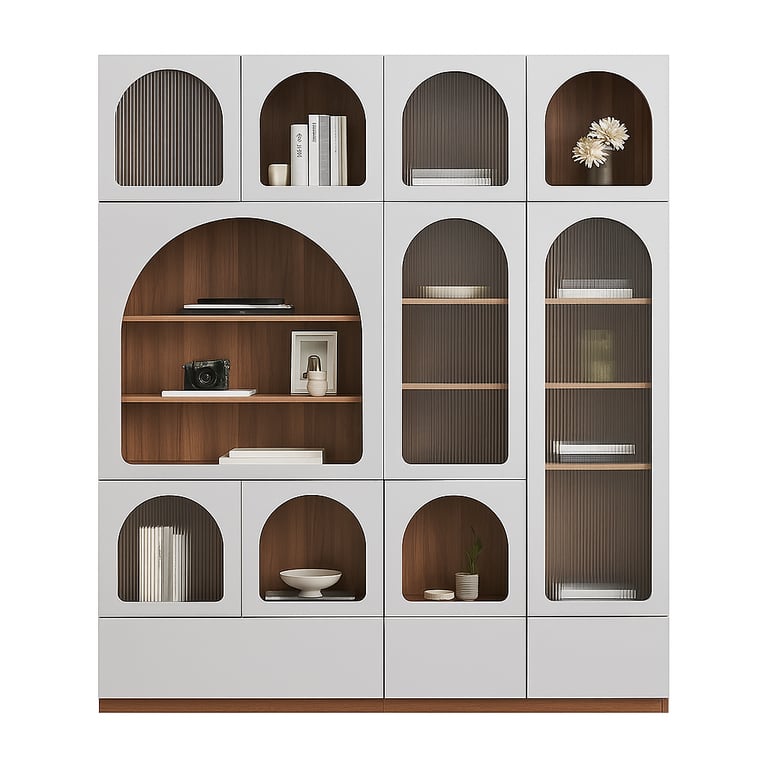 مورا خزانة كتب حديثة مصنوعة من الخشب الطبيعى  تلبى احتياجات التخزين الخاصة بك في مساحة مكتبك. تجمع بين حداثه التصميم و الرقى. لا يمكنها فقط عرض كتبك بجميع الأشكال والأحجام دون أي متاعب، بل يمكنها أيضًا تخزين إطارات الصور والمزهريات وغيرها من الملحقات بسهولة على الرف المفتوح. كما يمكنك الاحتفاظ بالألعاب الصغيرة في الأدراج أو التخزين المخفي لإخفاء الفوضى و خزانات متعدده مع أبواب مصنوعه من الأكليريك الشفاف مما يتيح لك تعدد استخداماتها .