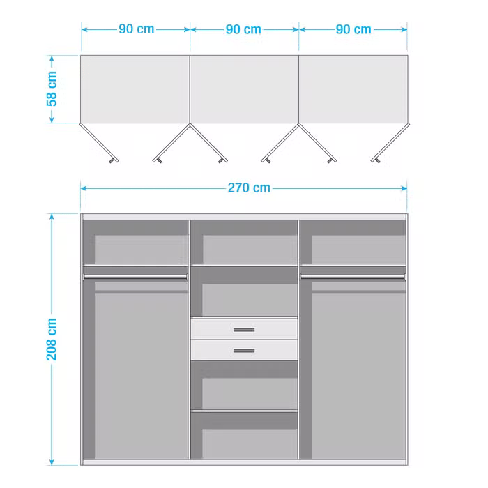 4. تحتوي على مساحة تخزين كبيرة في الرفوف والأدراج وسكة التعليق.