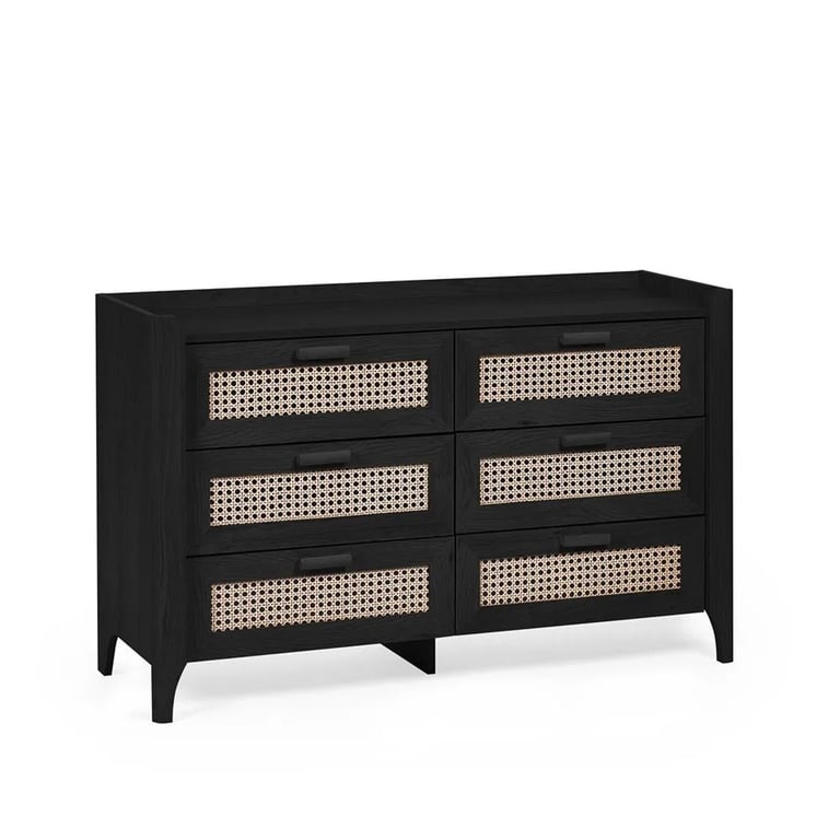 زينو – خزانة واسعة ب ٦ أدراج من الخشب الأسود والراتان