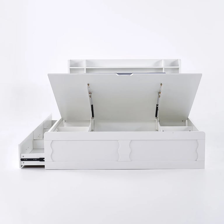 حقق أقصى استفادة من مساحة غرفة نومك مع سرير سمارت هافن المزود بمساحات تخزين، الذي يجمع بين الأناقة والوظائف العصرية بطريقة مثالية.
