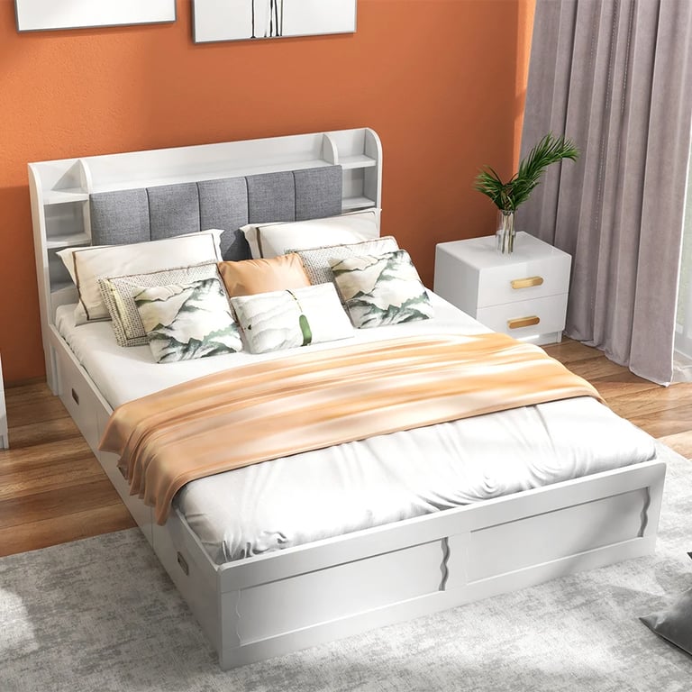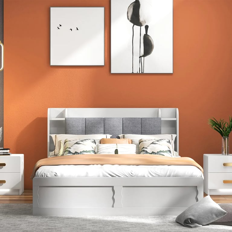 أرفف مدمجة في اللوح الأمامي – توفر مساحة مثالية لوضع الكتب والإكسسوارات والأغراض الأساسية بجانب السرير.