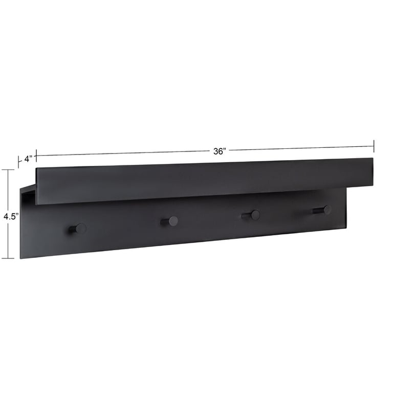 تصميم أنيق وعملي يضيف لمسة عصرية لديكور منزلك،إذ يقدم لك رف لتخزين الأغراض أو لعرض القطع الديكورية وأربعة خطافات لتعليق الملابس والمناشف، الرف متاح باللون الأسود أوالخشبي  مما يعني إمكانية دمجهم مع أي ديكور داخل منزلك.