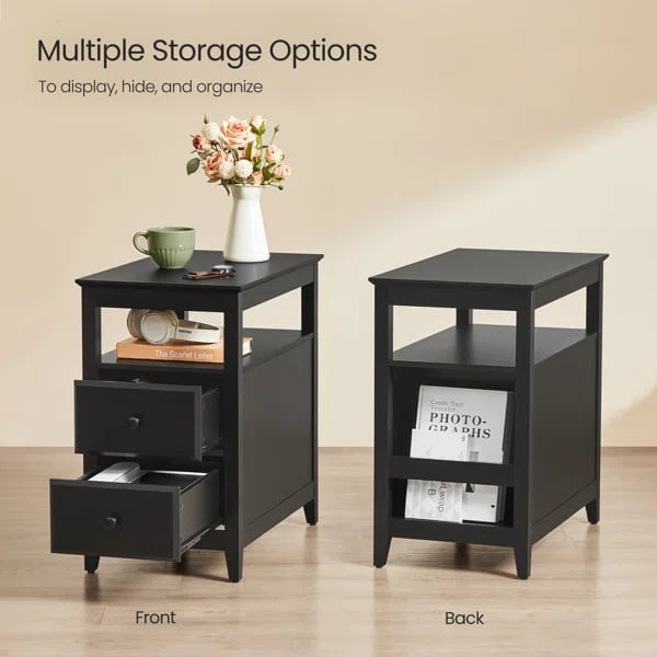تجمع هذه الطاولة الجانبية التقليدية بين الأناقة والعملية، مما يجعلها إضافة جميلة لغرفة المعيشة أو غرفة النوم الخاصة بك. مع درجين للتخزين ورف مفتوح بالأسفل، توفر هذه القطعة مساحة واسعة لضرورياتك.