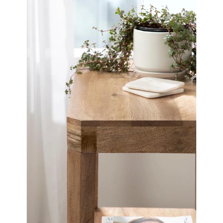 جدد ديكور منزلك مع الطاولة الجانبية المصنوعة من خشب الطبيعي الأنيقة والعصرية. تتميز هذه الطاولة النهائية بتصميم عصري لمنتصف القرن مع سطح طاولة هندسي ولمسة نهائية دافئة من الخشب الطبيعي.