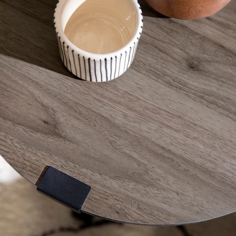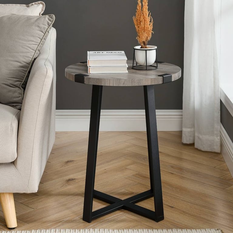 أضف السحر الصناعي والريفي إلى مساحة معيشتك مع هذه الطاولة الجانبية المستديرة.