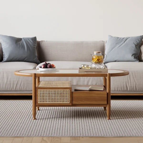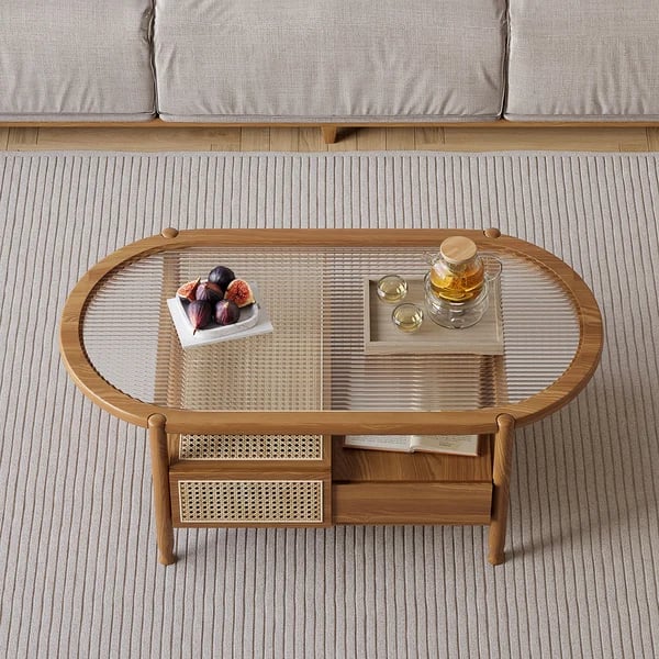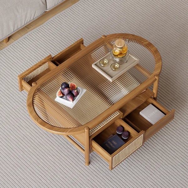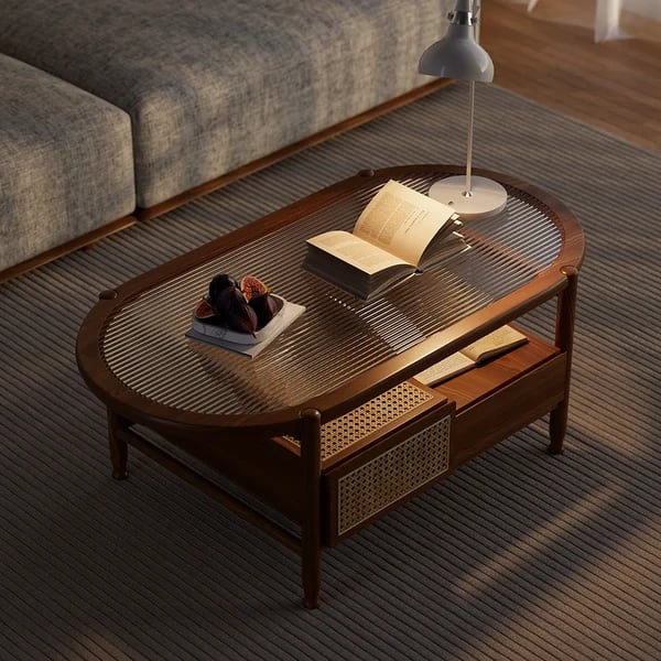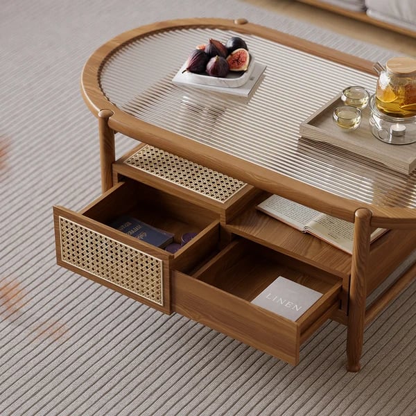 1. طاولة قهوة خشبية بيضاوية متعددة الوظائف وسهلة الاستخدام في الحياة والعمل.