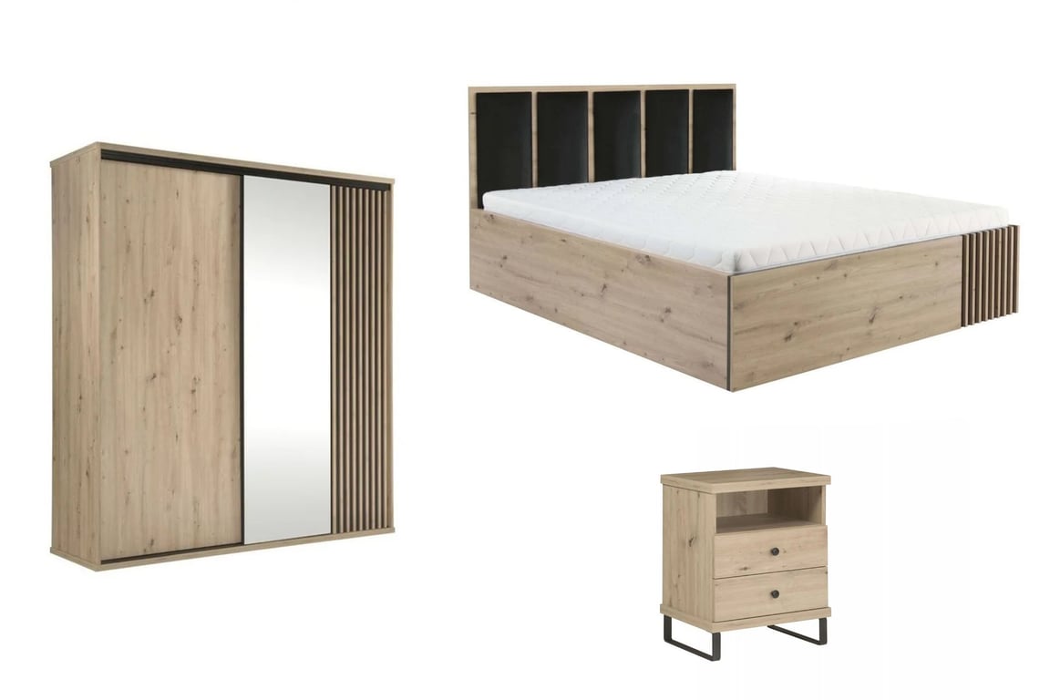 الرئيسية المتجر أثاث غرف النوم أثاث غرفة نوم طقم غرفة النوم لينيا من الخشب الطبيعي – بتفاصيل شرائح خشبية