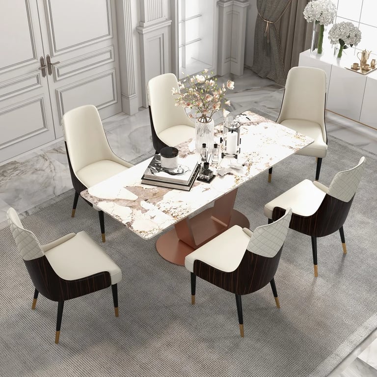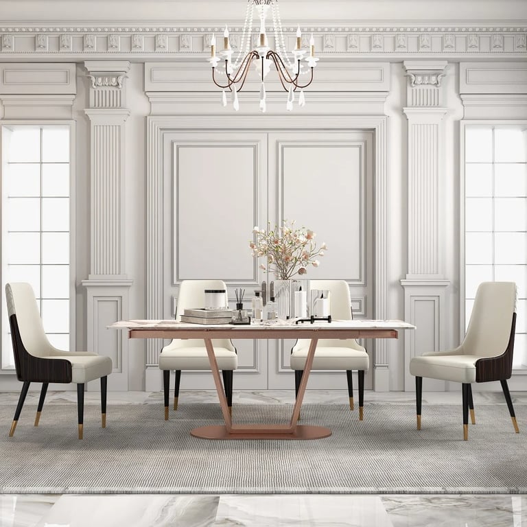هنا يلتقي الرقي العصري بالراحة الخالدة. يتميز كرسي أرماني لوكس بهيكل مصنوع من الخشب الطبيعي المعالج مع لمسات ذهبية ناعمة، ومقعد مبطن برغوة عالية الكثافة لراحة تدوم طوال اليوم. سواء كنت تستقبل الضيوف أو تستمتع بوجبة هادئة، يضفي كرسي أرماني حضورًا راقيًا على أي مساحة طعام.