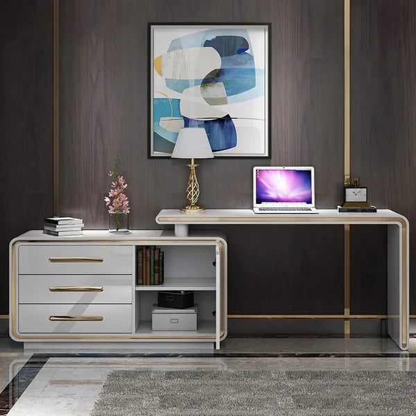يجمع بين العملية والتصميم الراقي، مما يجعله الخيار المثالي للعمل أو الدراسة. توفر الأدراج المدمجة وخزانة الملفات مساحة تخزين واسعة، تحافظ على مساحة عملك منظمة وأنيقة مع لمسة من العصرية. سواء لمكاتب المنزل أو أماكن العمل الاحترافية، صُمم لارو ليجمع بين الفخامة والعملية، مقدّمًا سطحًا أنيقًا وخيارات تخزين متعددة تتكيف مع احتياجاتك.