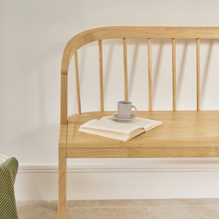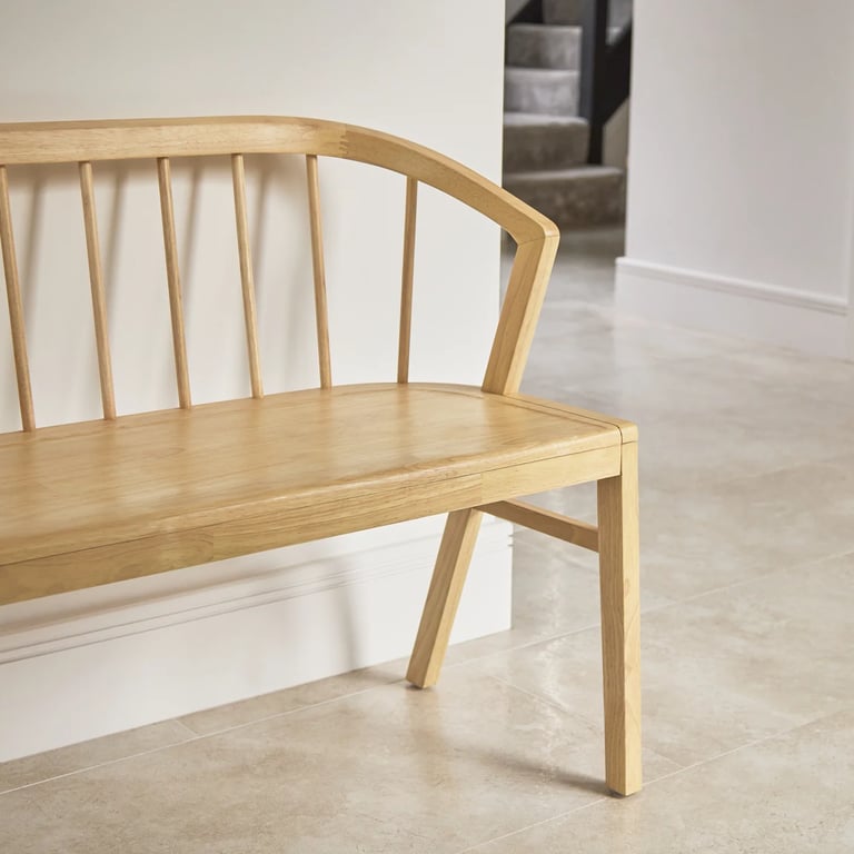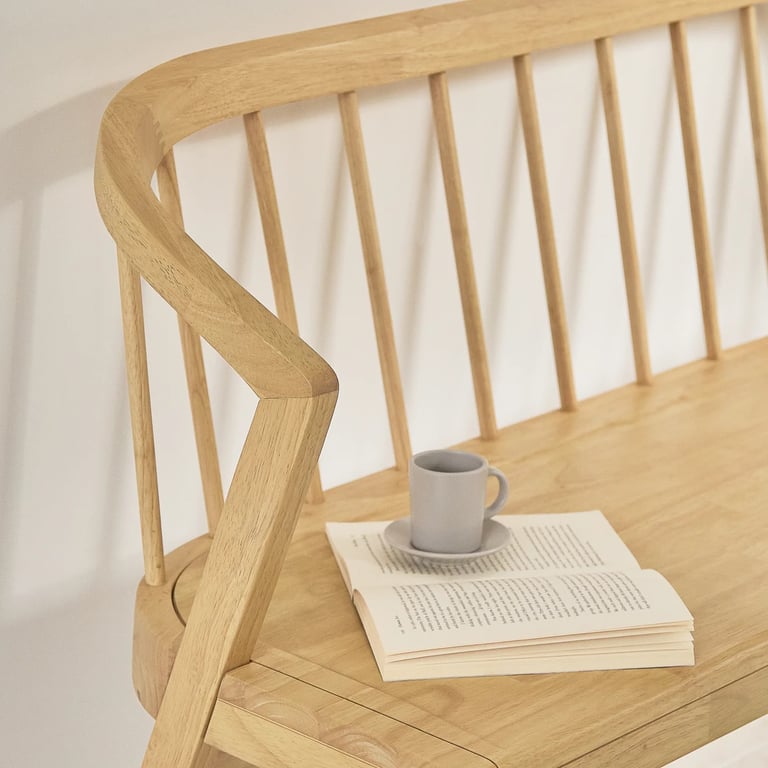 يجمع بين الحرفية التقليدية والعملية اليومية من خلال ظهره المنحني المصنوع من أعمدة خشبية وإطاره المتين من الخشب الطبيعي. مُعالج لمقاومة الرطوبة، والتشققات، والحشرات، مما يمنحه قوة وأناقة تدوم لسنوات. مثالي لغرف الطعام، أو المداخل، أو عند طرف السرير، يضيف إلستا إحساسًا دافئًا وترحيبيًا لأي مساحة.