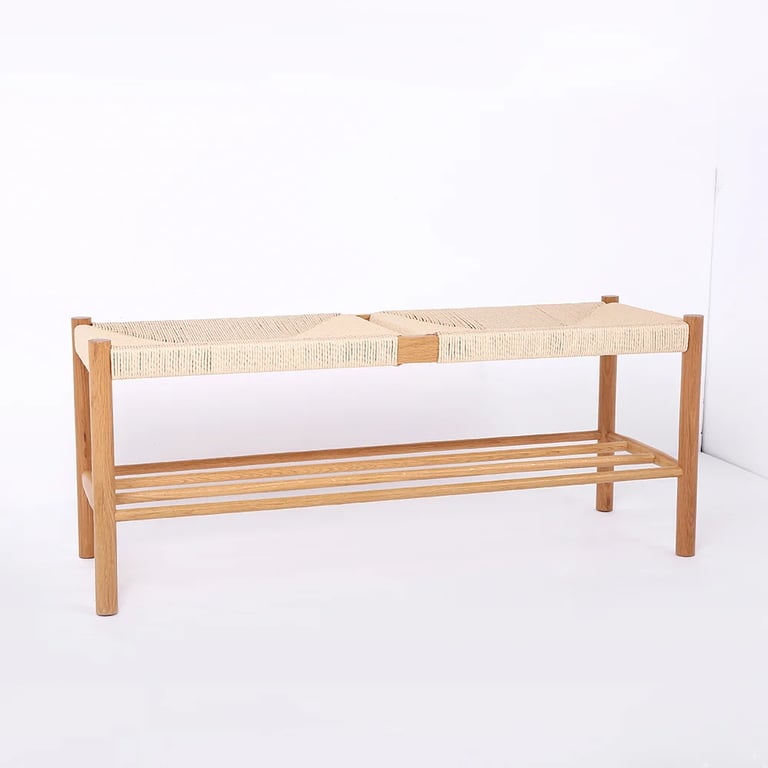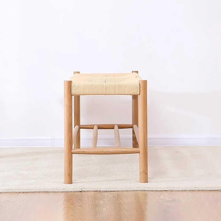 أنيق وعملي يتميز بمقعد من القش المنسوج يدويًا وهيكل خشبي متين، مثالي للمداخل، وغرف النوم، والمساحات المعيشية.