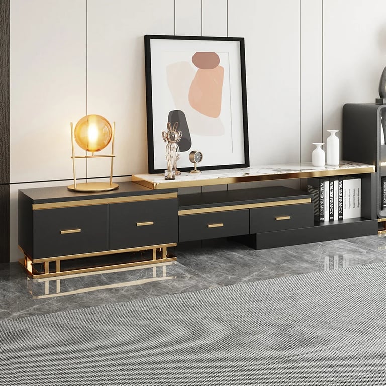 3. وحدة تلفزيون قابلة للتمديد والتقصير من 186 سم إلى 240 سم لتناسب مختلف المساحات.