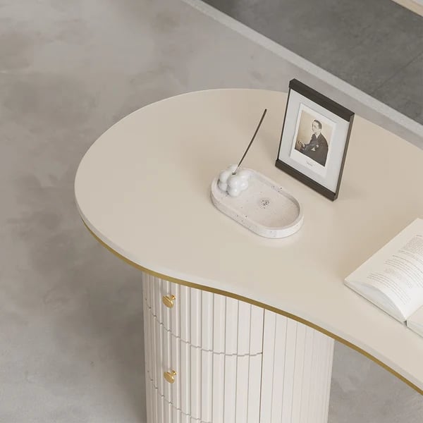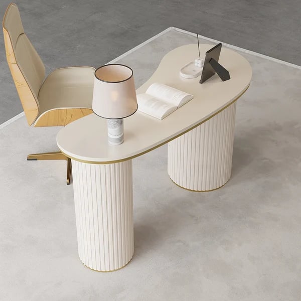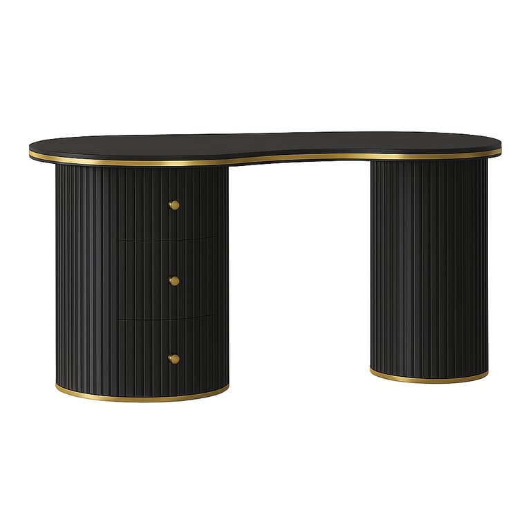 مكتب عصري أنيق من الخشب الطبيعي يتميز بحواف مستديرة وقاعدتين جانبيتين سميكتين — صُمم للمتانة، التخزين، ولمسة راقية مميزة.