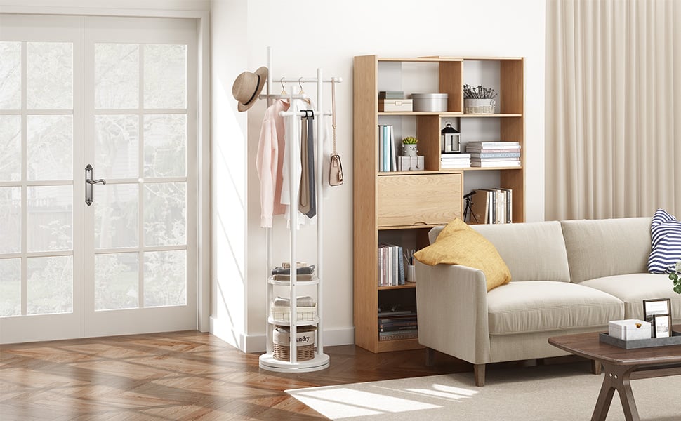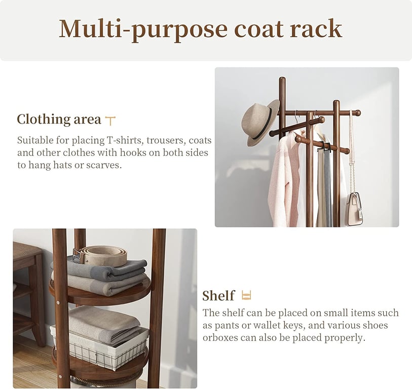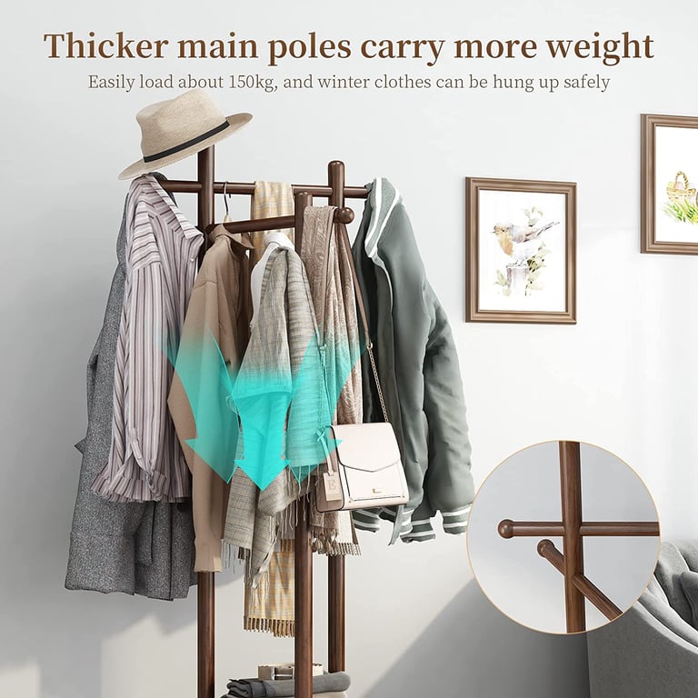 تصميم حديث يمثل مزيج من الوظيفية والجمال معا. توفر الشماعة مساحة كبيرة لتعليق الملابس الثقيلة والحقائب وغيرها. تدور ٣٦٠ درجة مما يسهل الوصول للقطعة المطلوبة بسهولة. مصنوعة من الخشب الطبيعي عالي الجودة.