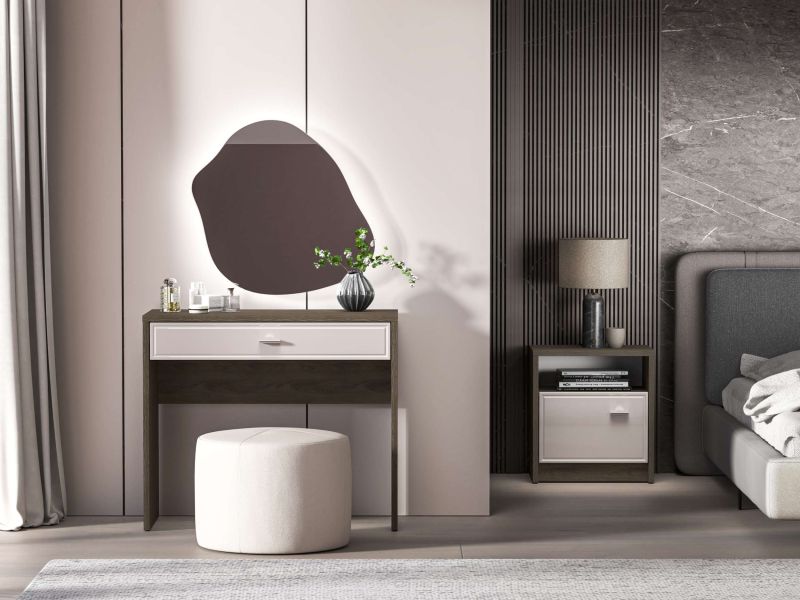 Bring practical elegance to your bedroom with the Éloria Bedroom Set, crafted from premium natural wood. The set includes a spacious dressing table with a large drawer for your daily essentials, paired with a functional nightstand for convenient bedside storage. With its modern design, Éloria combines simplicity and sophistication, offering long-lasting durability and timeless charm.