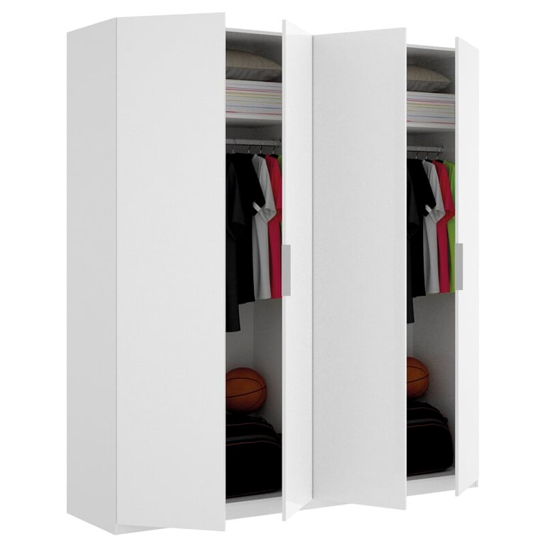 Behind the four doors compartment reveals a spacious interior. It came with a completely fixed top shelf. A full hanging rail: easy to organize your favorite fashion and storage.