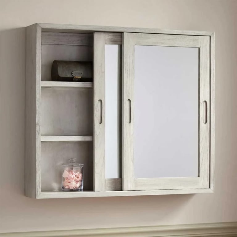 Let your bathroom glow with this decorative touch of selecting a charming mirror with an internal storage shelves.