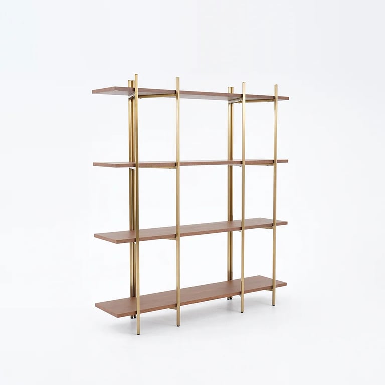 The Aurore Display Shelf is crafted to elevate interiors with its refined blend of natural wood and golden metal structure. Designed with multiple spacious tiers, it’s perfect for showcasing books, décor pieces, and artwork in style. The natural wood resists moisture, cracking, and insect damage, ensuring long-lasting beauty and strength. Its minimalist lines and shimmering gold accents make it a statement of elegance and durability.