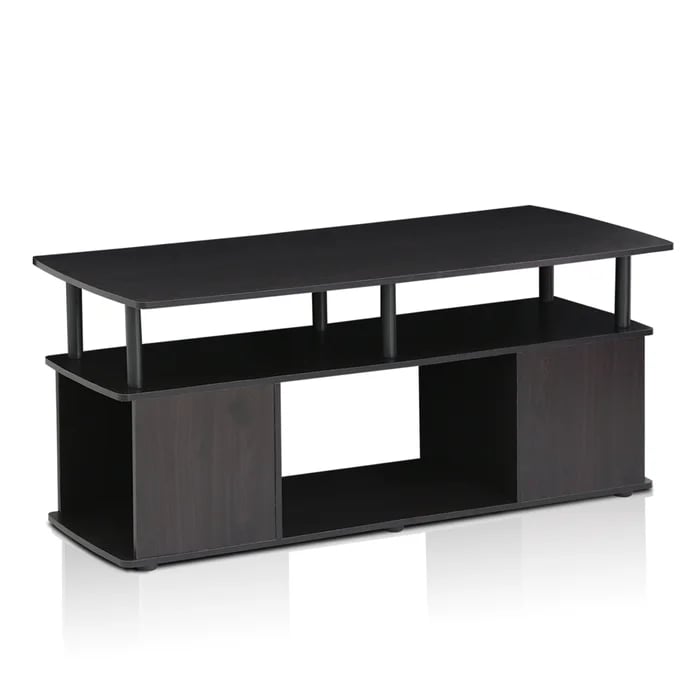 A sleek, modern black coffee table with open shelves for stylish storage and display — perfect for keeping your essentials within easy reach.