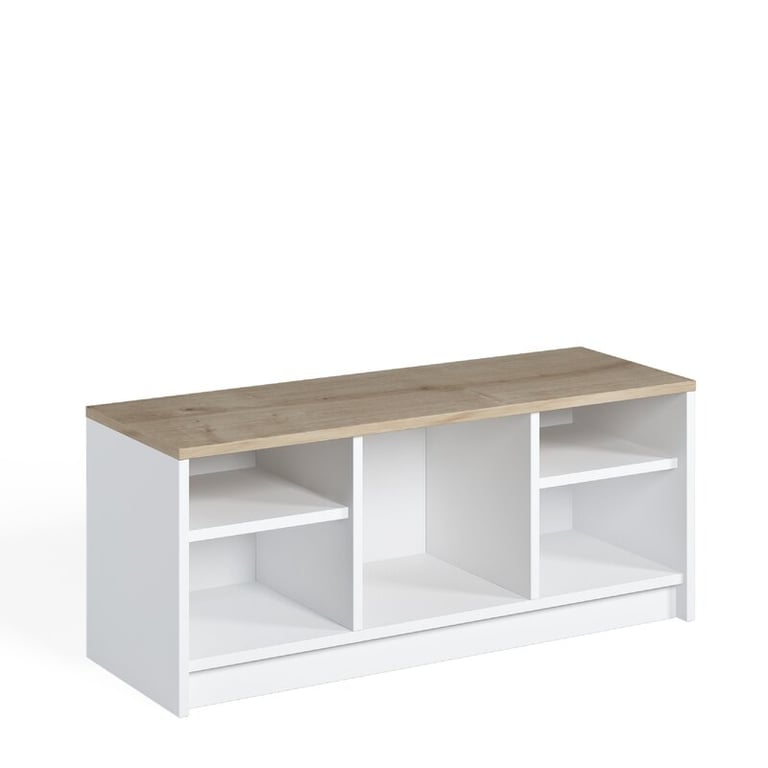 Chipboard is used to make our products. It's a shoe cabinet with four conventional shelves and one huge shelf for a hallway storage unit.