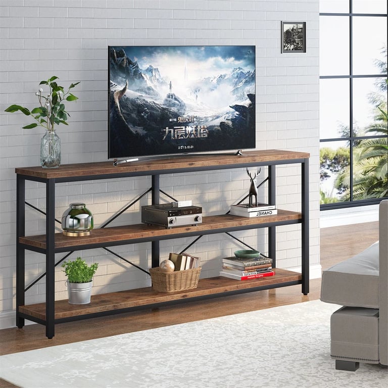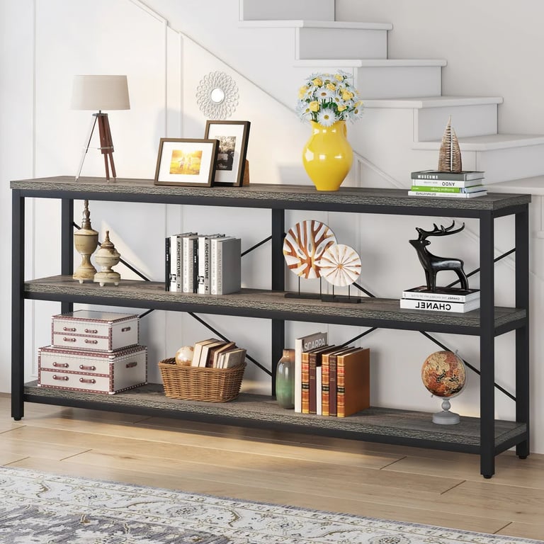 4. It contains two large shelves to place accessories and vases with a metal frame.