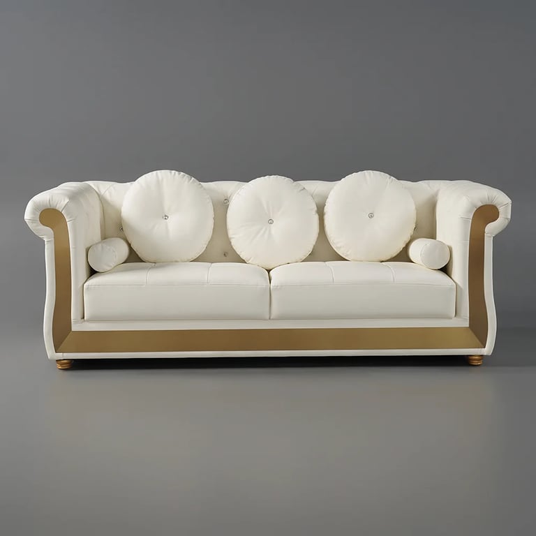 It combines sleek white upholstery with golden metal legs for a timeless, upscale look. Crafted for comfort with plush seating and smooth fabric, it brings elegance to any living space. Its durable build and striking design make it a perfect centerpiece for both modern and classic interiors.