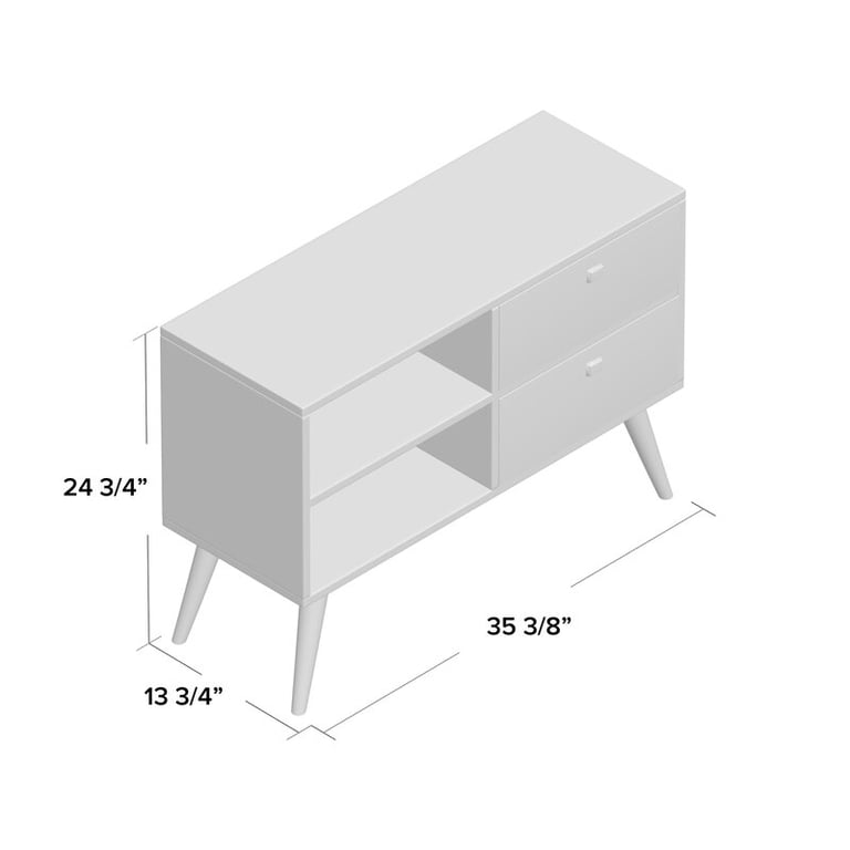 your TV is a centerpiece in your home, so why not give it an on-trend look with a TV stand like this? Perfect for a mid-century-inspired room, this stand strikes a clean-lined rectangular silhouette founded on tapered dowel legs. and , this 24.8'' H x 35.43'' W x 13.78'' D piece features two drawers and two shelves, so it's perfect for clearing away media clutter.