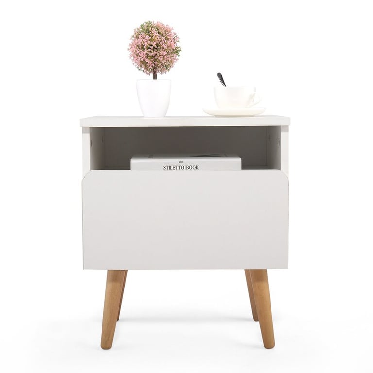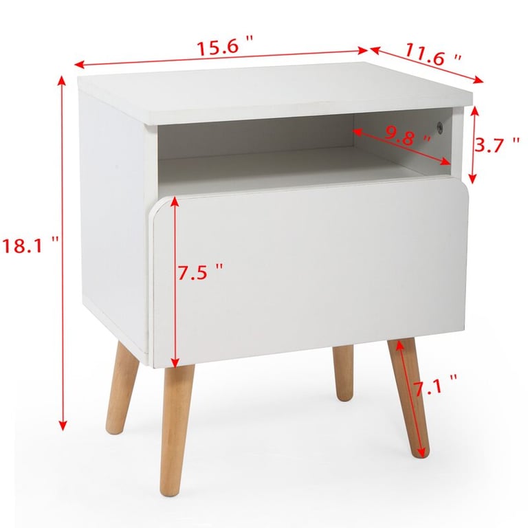 The strong particleboard, Natural Wood, and pine legs make up this wood nightstand storage cabinet.