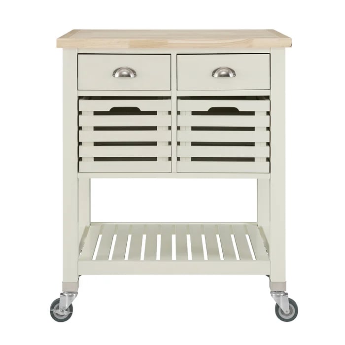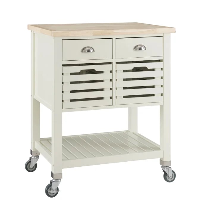 Diwai Rolling Kitchen Cart with Solid Wood Top