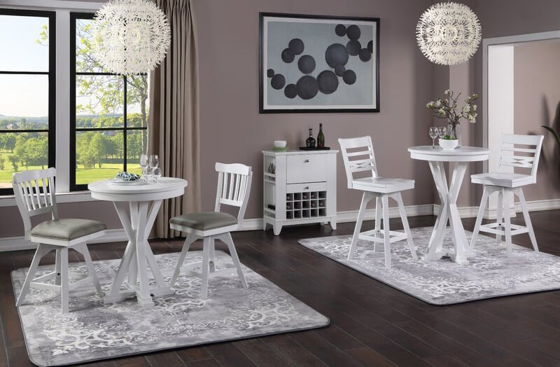 A beautiful pure white pub dining table with a sturdy and long-lasting acrylic finish for many years of dining pleasure.