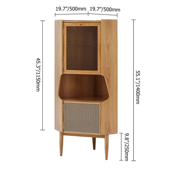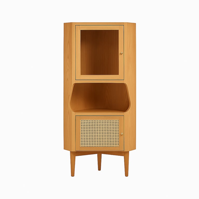Hutch Natural Corner Cabinet 2-Door with Rattan