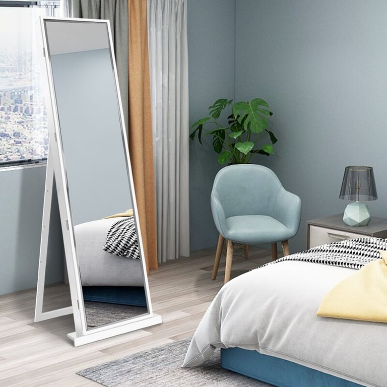 It lives forever as a timeless piece from natural wood that blends a flawless reflection with smart functionality. A full-length standing mirror with a sleek metal frame brings elegance and practicality in one refined design.