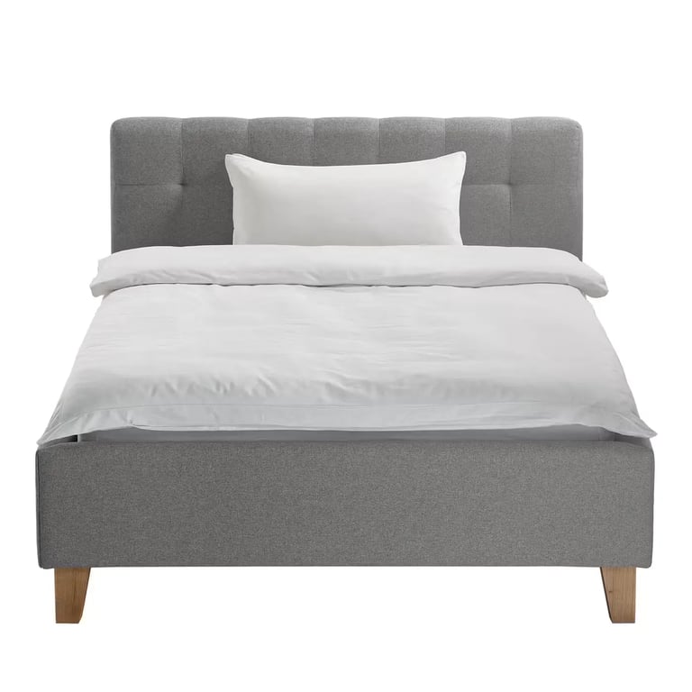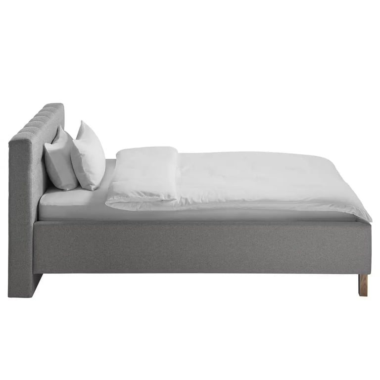 It is your shortcut to stylish serenity. Wrapped in smooth gray fabric with a softly tufted headboard, Nora blends modern elegance with all-day comfort. Its natural wood frame ensures long-lasting support, while the neutral tone fits effortlessly into any space.