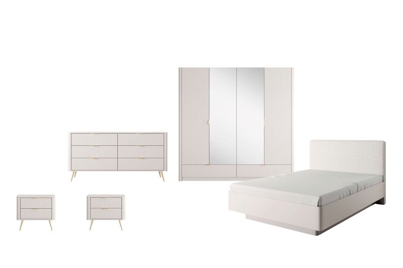 Odette Modern Bedroom Set – Upholstered Bed, Hinged Wardrobe