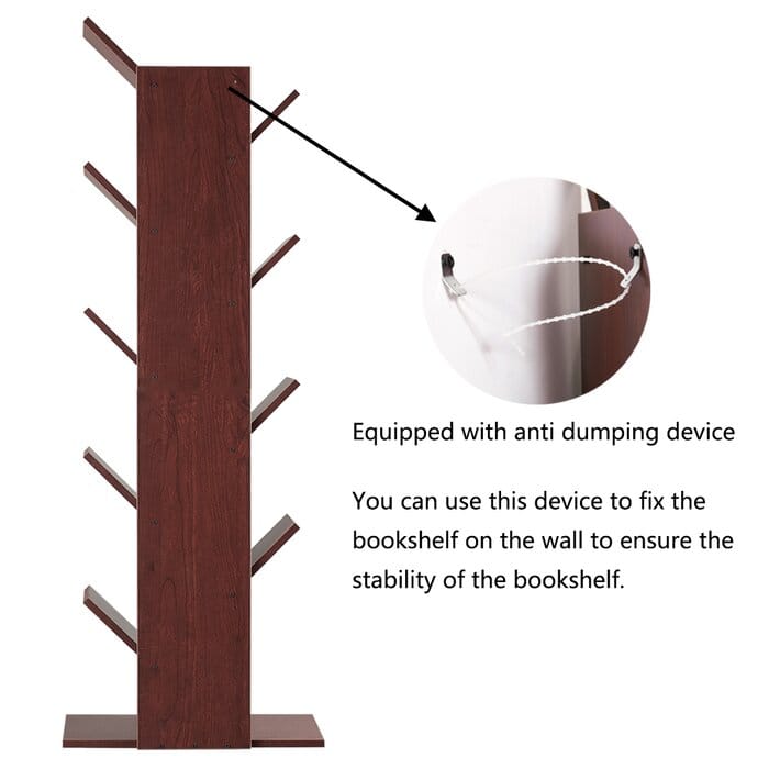 A brown bookcase takes the tree shape so it adds a personality and unique view to your decor. it has 9-tier shelves that carry a large number of books, CDs, and photo albums. the bookcase takes up no space and fits any room of your house without narrowing it.