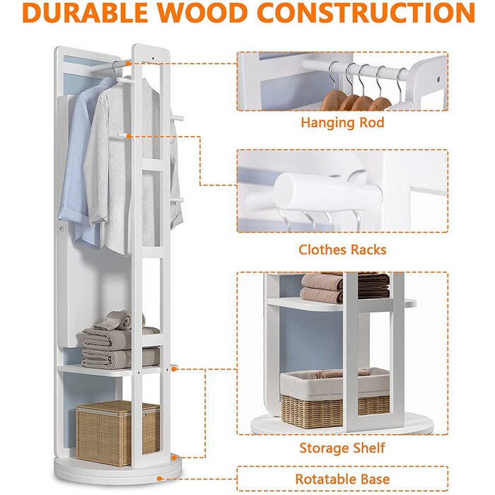 Admire your outfit from head to toe and keep your coats and bags ready by this Wide Jewelry Armoire with Mirror. It is a 360 degrees Rotating Mirror Armoire.