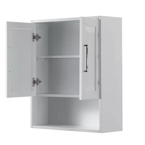 2. The doors feature an elegant and unique geometric design, making it a standout piece in your bathroom. It also includes an external shelf for displaying decorative items.