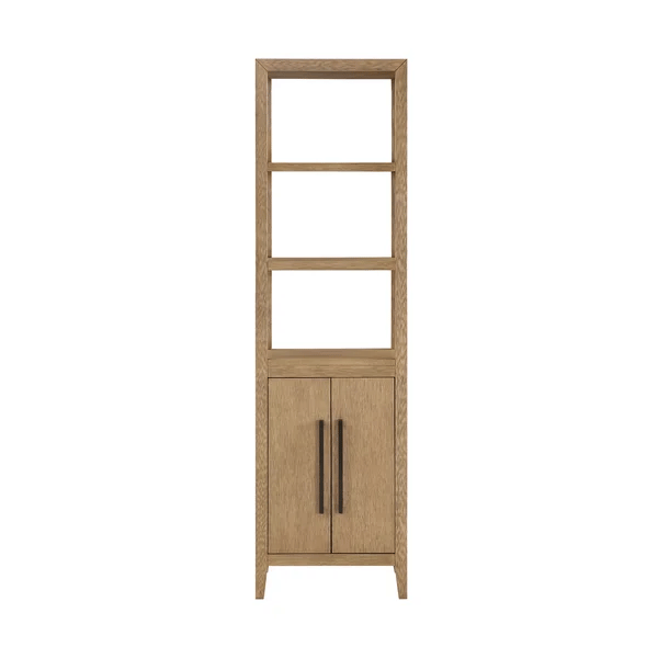 3. This cabinet also has two closed doors with black metal handles to store the rest of your personal items and towels.