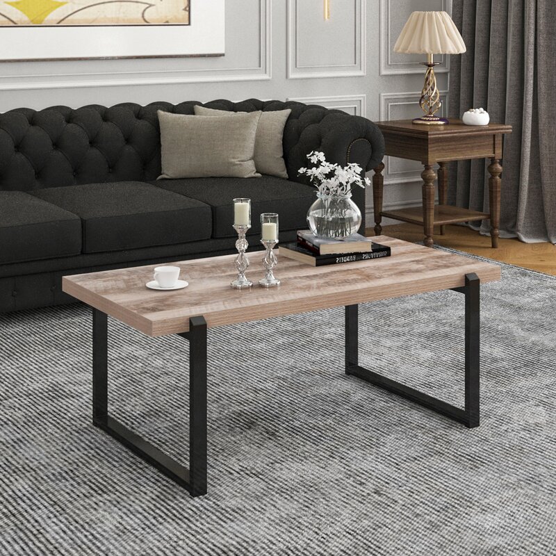 A stylish coffee table with a natural wood top and matte black metal frame — combining modern design with everyday durability and smart open storage.