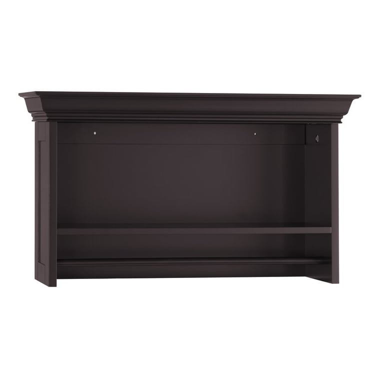 This cabinet features one wall shelf with a towel holder attached to the bottom of the shelf.