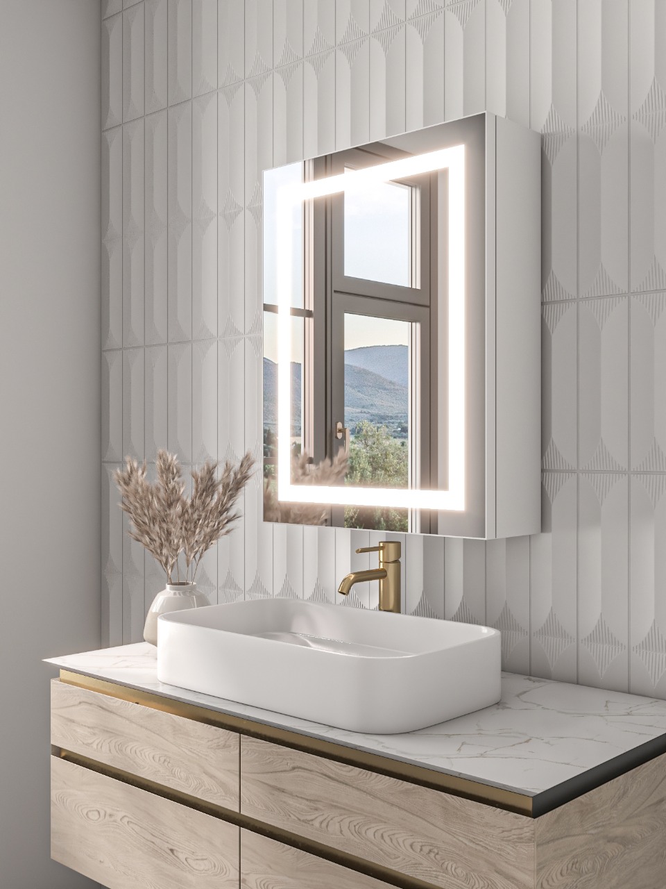 Dexy – LED Bathroom Mirror with Natural Wood Medicine Cabinet